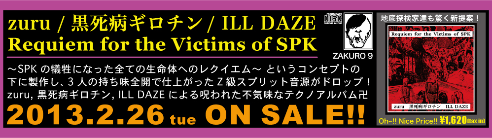 zuru, 黒死病ギロチン, ILL DAZEの3名による呪われた音源集。